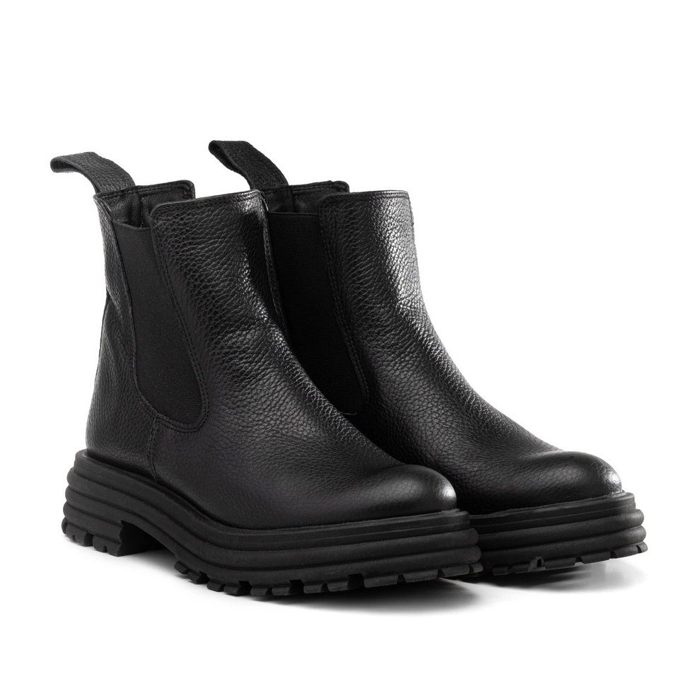 Chelsea čizme s debelim potplatom, crna Butdam Wos koža