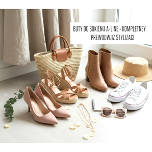 Savršeno rješenje bit će cipele s blok petom ili stiletto petom. Birajte modele u prigušenim bojama – crnoj, bež ili smeđoj. Imajte na umu da haljina A-kroja ima lepršavu suknju, pa će visoke potpetice pomoći u održavanju pravih proporcija figure i učiniti cijeli stajling skladnim.