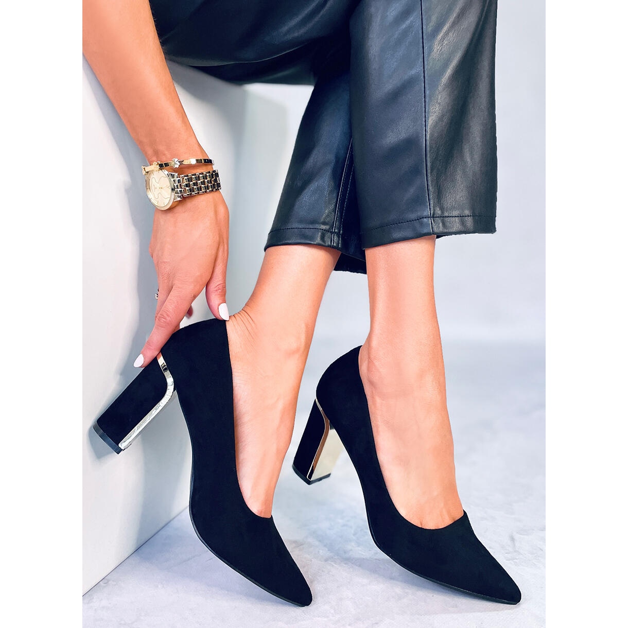 Otkrijte eleganciju i udobnost s Lucrezia Black pumpama iz PA1. Ove elegantne ženske salonke s petom visine 8,5 cm kombiniraju bezvremenski dizajn s modernim naglascima, što ih čini savršenim izborom za svaku priliku. Njihovi suženi vrhovi daju im uredan oblik, a zlatni elementi pete dodaju profinjenost i suptilno naglašavaju stajling.