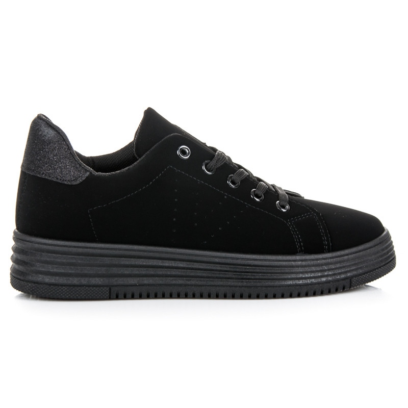 Otkrijte jedinstvene cipele s platformom iz Vicesa koje su savršen spoj udobnosti i stila. Ove crne tenisice moraju biti u ormaru svake žene! Izrađene od visokokvalitetne ekološke kože, djeluju moderno i elegantno, a njihov minimalistički dizajn omogućuje jednostavno kombiniranje uz razne stilove.