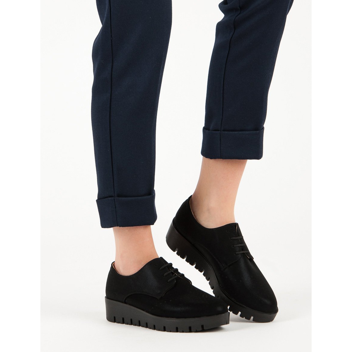 Unutrašnjost cipela je završena kožnim umetkom koji osigurava odgovarajuću prozračnost i udobnost nošenja tijekom cijelog dana. Kopčanje na vezicu omogućuje savršeno pristajanje uz nogu, što je važno kako u udobnosti tako i u estetskom smislu. Okrugli vrh dodaje šarm, a peta visine 4 cm čini ovaj model praktičnim i elegantnim.