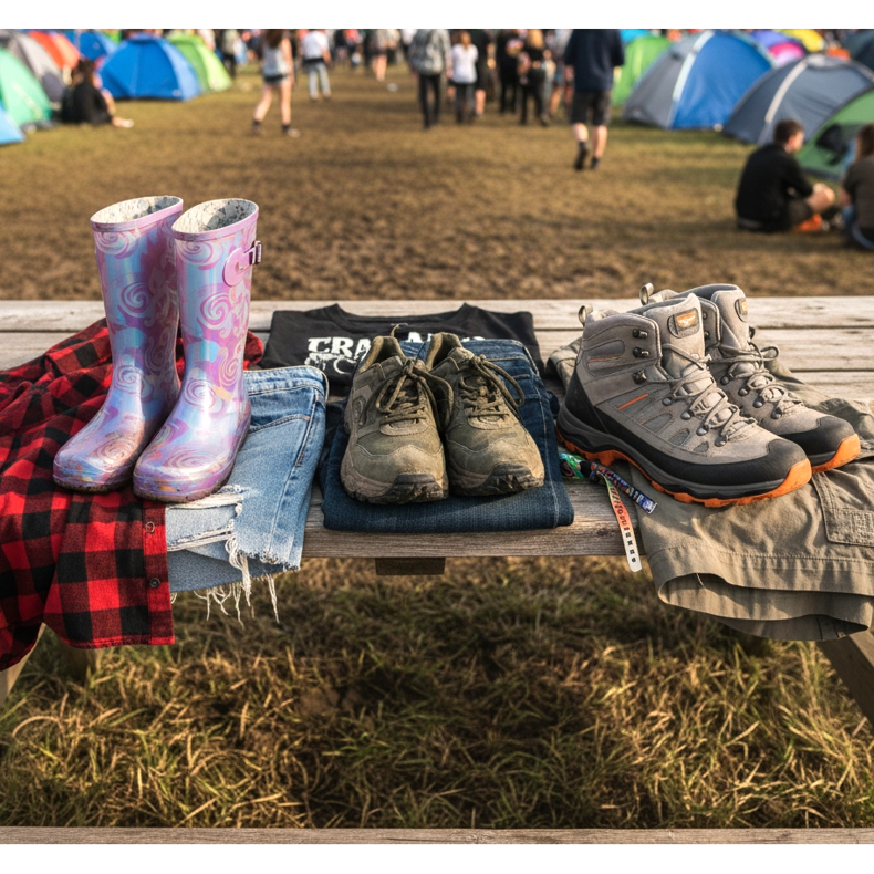 Savršena festivalska cipela je ona koja vam omogućuje da zaboravite na svoja stopala i usredotočite se na glazbu. Odaberite udobnost, zaštitu i otpornost na teške uvjete. Uzmite dva para - glavni par (tenisice ili trekking cipele) i rezervni par u slučaju kiše (wellingtonice). Razbijte svaki par prije odlaska i ne štedite na cipelama koje se mogu zaprljati.