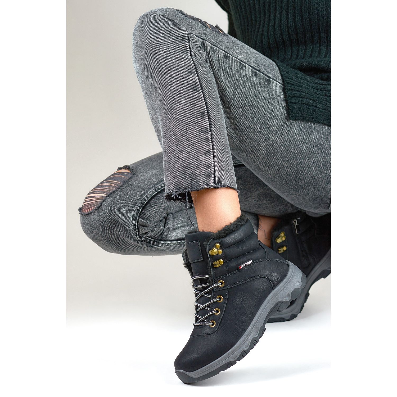 Unutrašnjost cipela pažljivo je obložena ugodnom ekološkom krznom, koje ne samo da toplinu pruža toplinu, već i udobnost nošenja već duže vrijeme. Zahvaljujući tome, model 1696-1B idealan je izbor za zimske izlete, učinkovito štiteći stopala od hladnoće i vlage.
