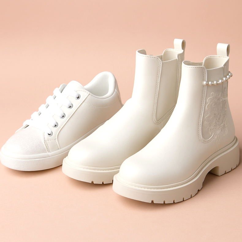 Trendovi za 2025./2026. uvode sve modernije pristupe obući za pričest. Bijele tenisice svježa su alternativa tradicionalnim balerinkama, pogotovo ako djevojka nosi neformalniju haljinu za pričest ili ako njezina obitelj preferira opušteniji stil. Tenisice su izuzetno udobne i pružaju savršenu potporu djetetovim stopalima tijekom cijelog dana. Mogu biti ukrašeni sjajnim elementima ili suptilnim ukrasima koji odgovaraju eleganciji prigode. Gležnjače s elastičnim umetcima ili platformom još su jedna opcija koja dobiva na popularnosti. Mogu biti izrađene od ekološke kože i imati delikatne dodatke, poput čipke ili bisera, koji će im dati šarm, a da djetetu ne smetaju.