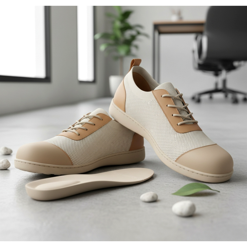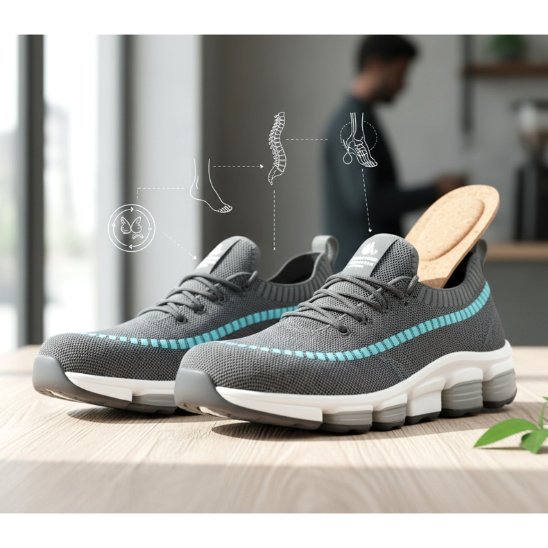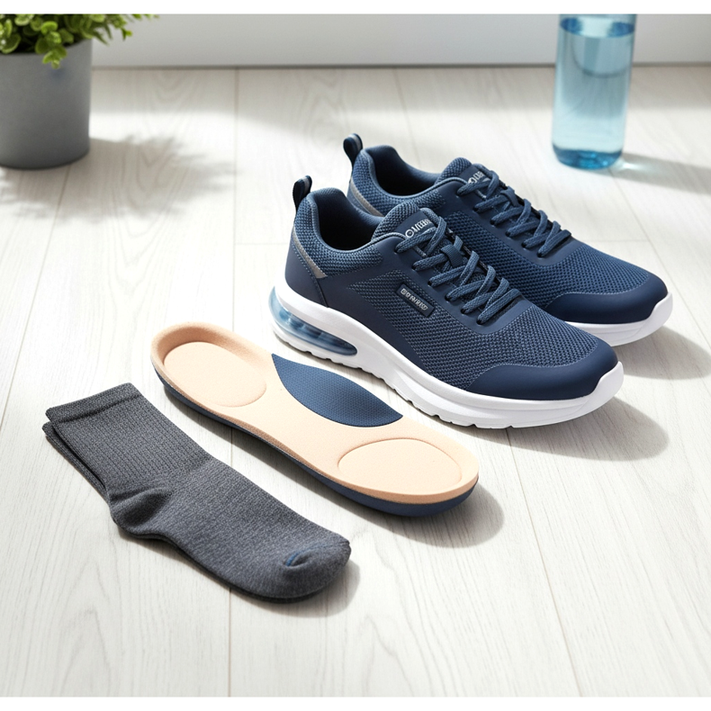 Prije svega: amortizacija. Cipele moraju imati debeli, fleksibilni potplat koji apsorbira udarce pri hodu i stajanju na tvrdim površinama (npr. pločice). Ravne tenisice s tankim potplatom su najgori izbor. Potražite modele s EVA pjenom ili zračnim sustavima u potplatu. Mali klin ili povišenje pete (cca 2-3 cm) zdravije je od potpuno ravne cipele jer rasterećuje Ahilovu tetivu.