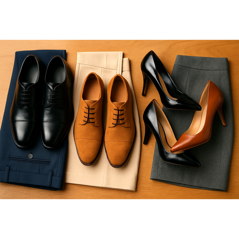 Poslovno okruženje zahtijeva konzervativnu obuću. Muškarci bi trebali nositi crne ili tamno smeđe oksfordice ili derbi cipele. Žene će izgledati dobro u salonkama srednje pete u neutralnim bojama. Izbjegavajte ekstravagantne uzorke, jarke boje i pretjerane ukrase. Jednostavnost i klasika su ključni.