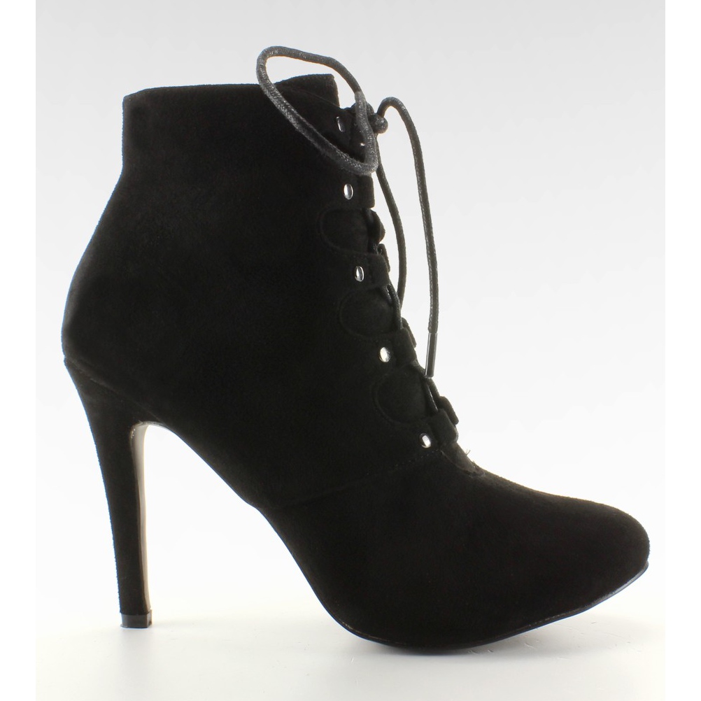 H253 Crne gležnjače na vezanje na visoku petu - crne, antilop
