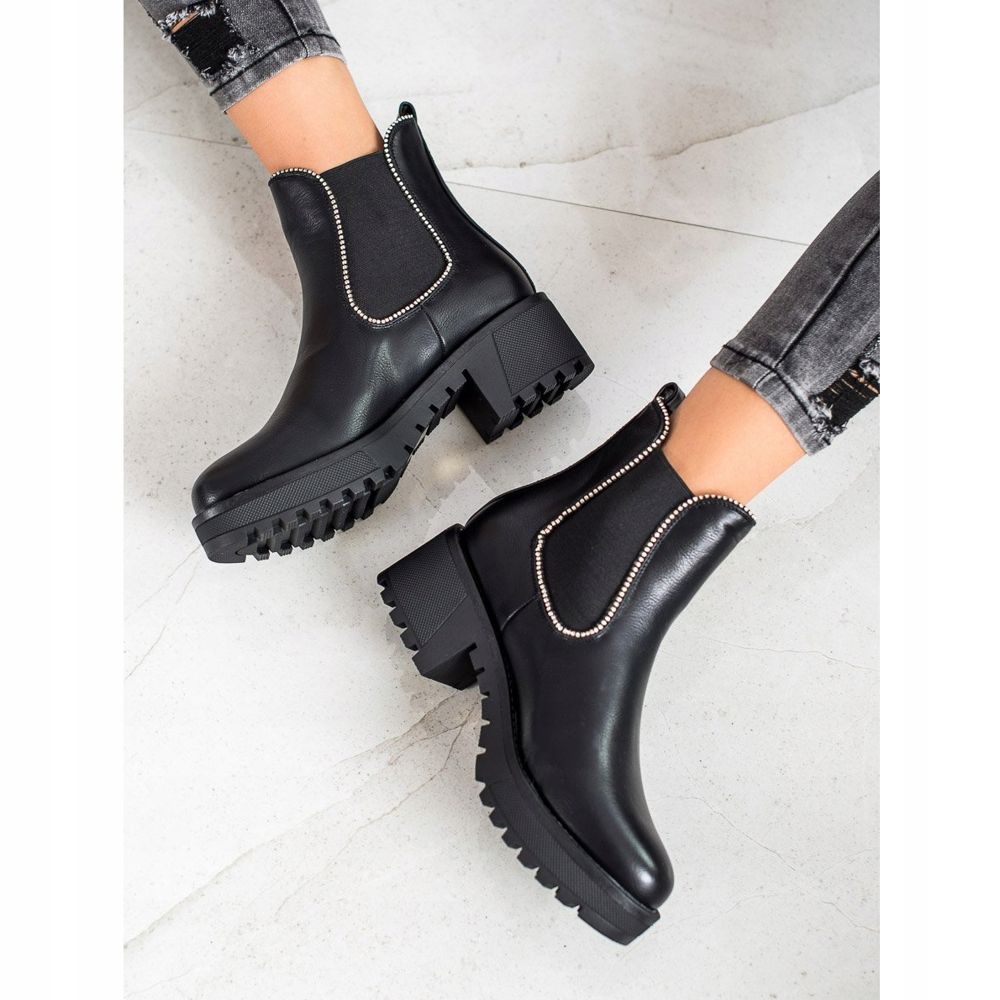 SHELOVET Čizme Chelsea s kubnim cirkonijem crna
