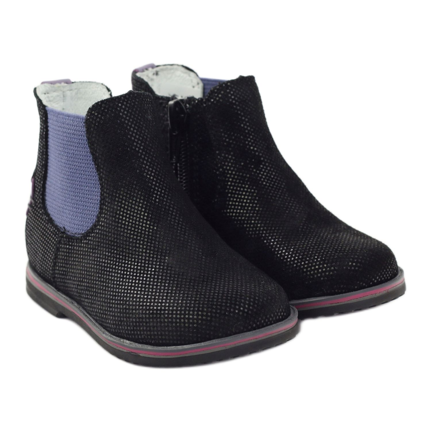 Čizme pružaju odgovarajuću potporu mladom stopalu zahvaljujući učvršćenoj peti i profiliranom ulošku. Prirodni materijali povećavaju udobnost korištenja i prozračnost, a antibakterijski umetak osigurava higijenu. Bočni patentni zatvarač olakšava svakodnevnu upotrebu, a univerzalna crna boja s ljubičastim naglaskom dobro će pristajati uz mnoge školske i party stilove.