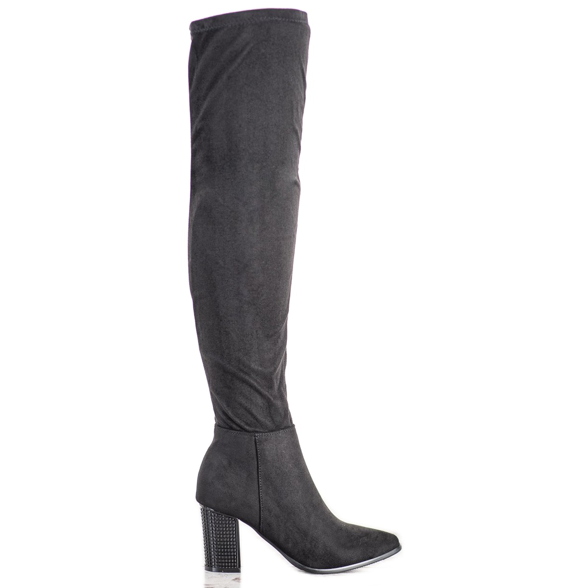 Čizme do butina s ukrasnom VINCEZA petom crna