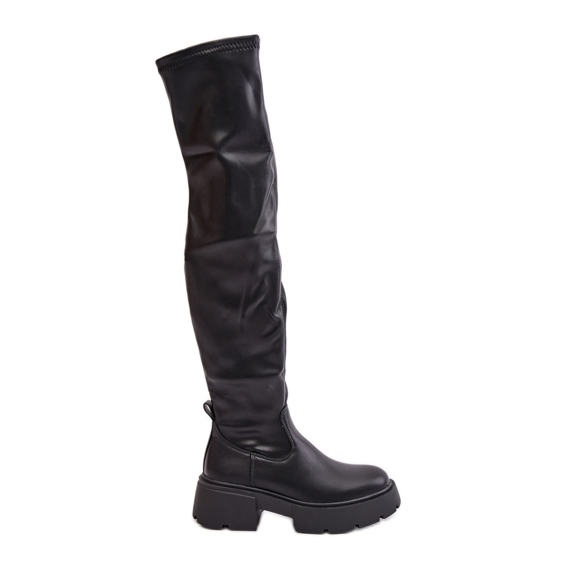 Pojedinosti: Čizme iznad koljena s platformom i ravnom petom od eko kože, crne Loreviana crno