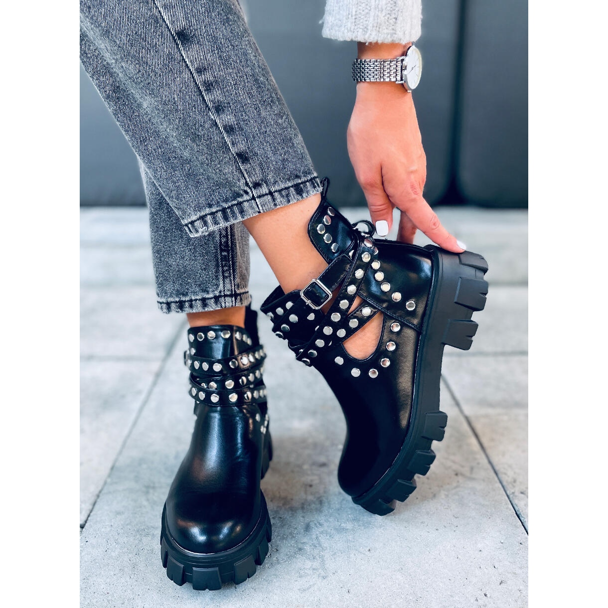Otkrijte izvanredne crne gležnjače s nitnama NC1127 Black koje su apsolutni hit među modnim trendovima! Ove elegantne ženske gležnjače kombiniraju privlačne izreze i rock karakter zahvaljujući vještačkim kamenčićima i nitnama. Savršen su izbor kako za svakodnevnu upotrebu tako i za posebne prigode, dodajući jedinstvenu notu vašem stajlingu.
