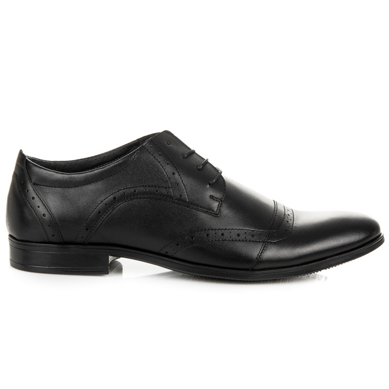 Lucca - muške cipele u klasičnoj, elegantnoj varijanti. Crna, glatka prirodna koža i bezvremenski kroj čine da ovaj model savršeno pristaje uz odijelo i druge elegantne stilove. Zahvaljujući stabilnom, ravnom plastičnom potplatu, cipele pružaju udobno hodanje i omogućuju dugotrajno plesanje.