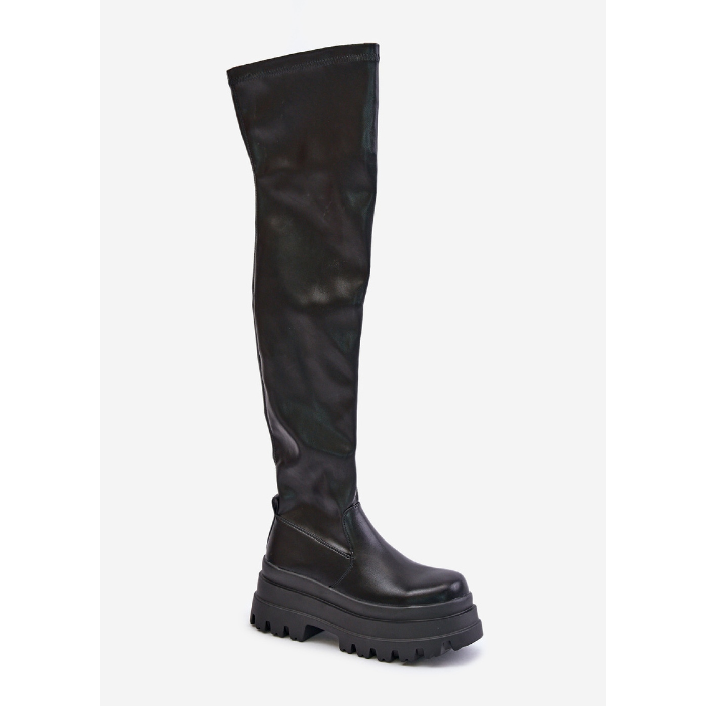 Otkrijte jedinstveni stil i udobnost nošenja zahvaljujući kozačkom modelu LA3108 Black. Ove elegantne čizme koljena, izrađene od visokokvalitetne ekološke kože, savršen su izbor za hladnije dane. Ogromna platforma s visinom od 6 cm savršeno povećava stabilnost i udobnost, istovremeno omogućavajući stvaranje modnih stilova.