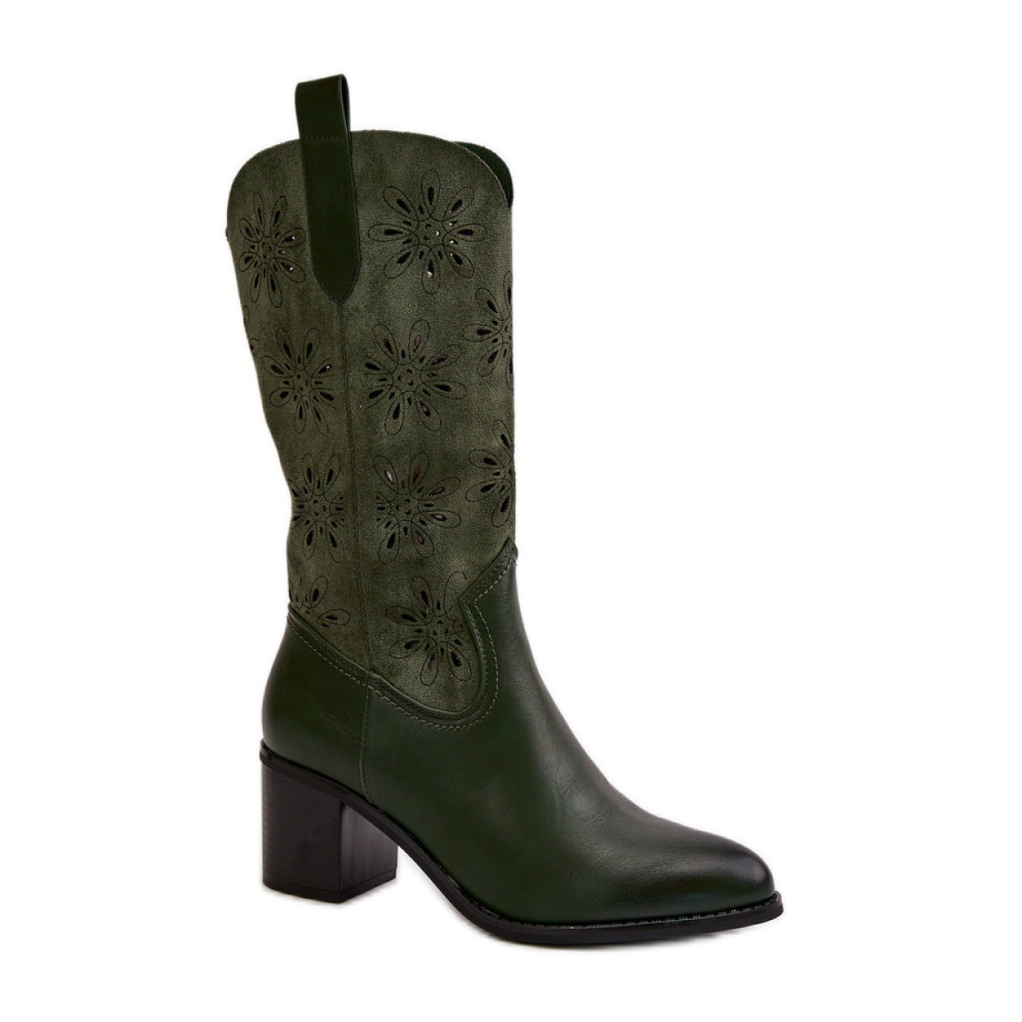 Gornji dio otvorenog rada, dosežući polovinu teleta, čizme ne samo modne, već i funkcionalne. Zagrijavanje unutar cipele na vrhuncu stopala pruža udobnost i toplinu, što ih čini odličnim izborom za zimske šetnje ili eskapade u gradu. Zahvaljujući visini pete od 6,5 cm, dobivamo dodatnu utjehu prilikom nošenja, a istovremeno možemo dodati nekoliko centimetara visok.