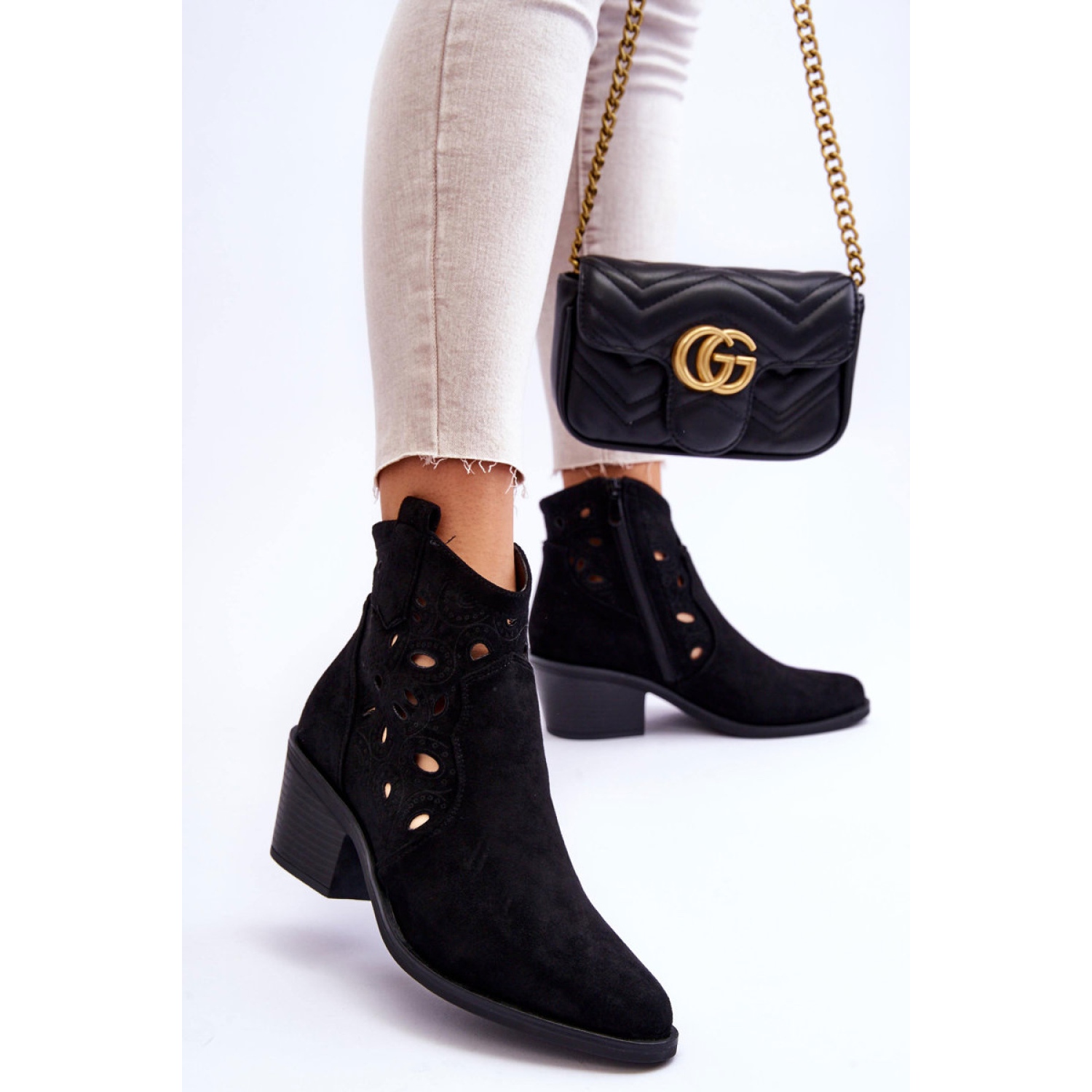 Pričvršćene bokom gornjeg zatvarača za patentni zatvarač, čizme je lako staviti, a ukočena peta im daje karakter i podršku za stopalo. Izrađene od visokokvalitetne eko antilop u atraktivan, otvoreni uzorak, savršeno se uklapaju u modne trendove, a njihova univerzalna crna boja čini ih da odgovaraju mnogim stilovima.