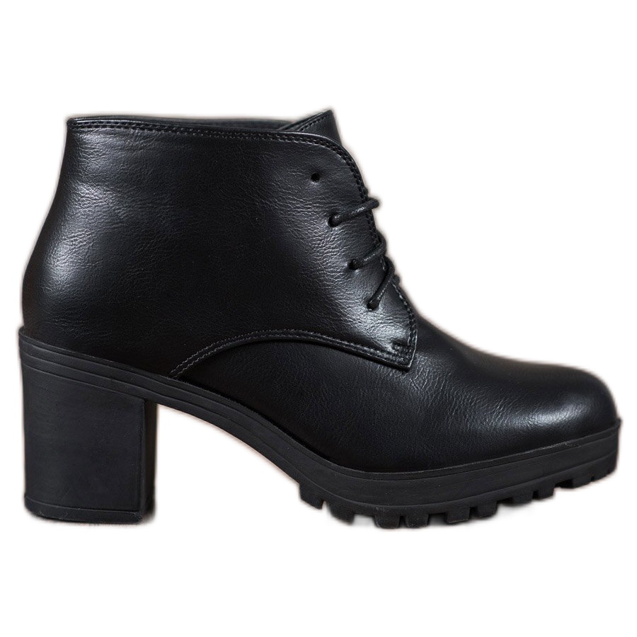 SHELOVET Gležnjače s platformom na vezanje u crnoj boji savršen su izbor za žene koje cijene klasiku i eleganciju. Ove elegantne čizme izrađene su od visokokvalitetne ekološke kože koja osigurava ne samo atraktivan izgled, već i udobnost nošenja.