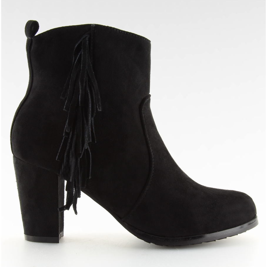 JKD-14 Crne gležnjače na visoku petu s resama - crne boho gležnjače od brušene kože