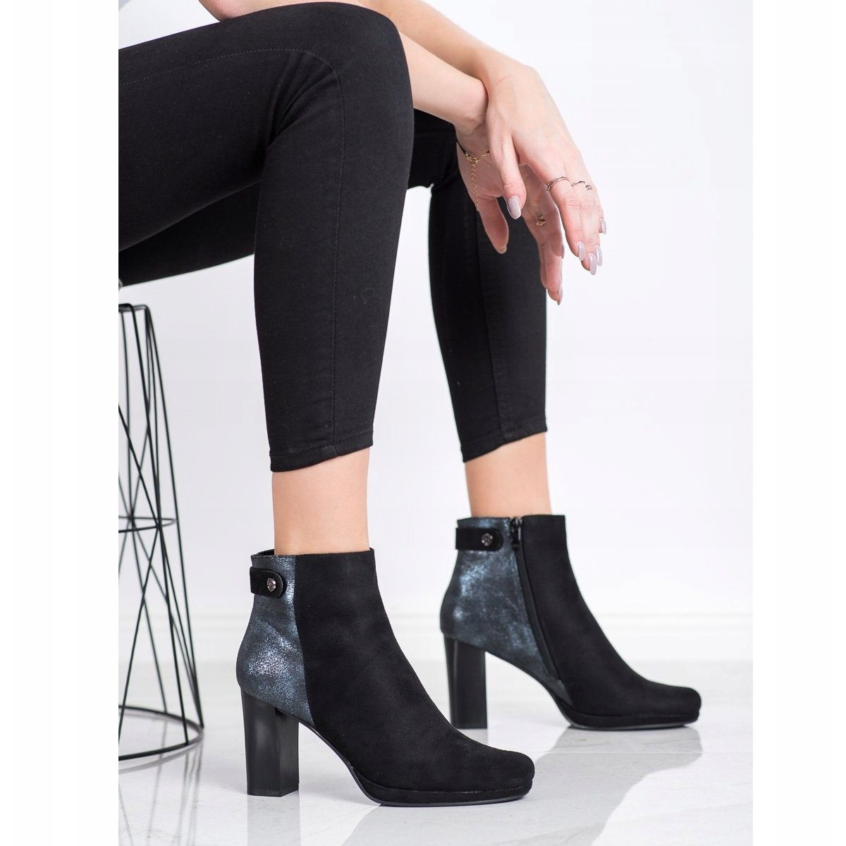 Otkrijte eleganciju i udobnost uz M.Daszyński crne gležnjače na visoku petu. Ove elegantne ženske cipele savršen su odabir za svaku priliku - kako za svaki dan tako i za večernje izlaske ili proslave. Zahvaljujući elegantnom kroju i završnici od imitacije brušene kože, čizme se savršeno uklapaju u aktualne modne trendove.