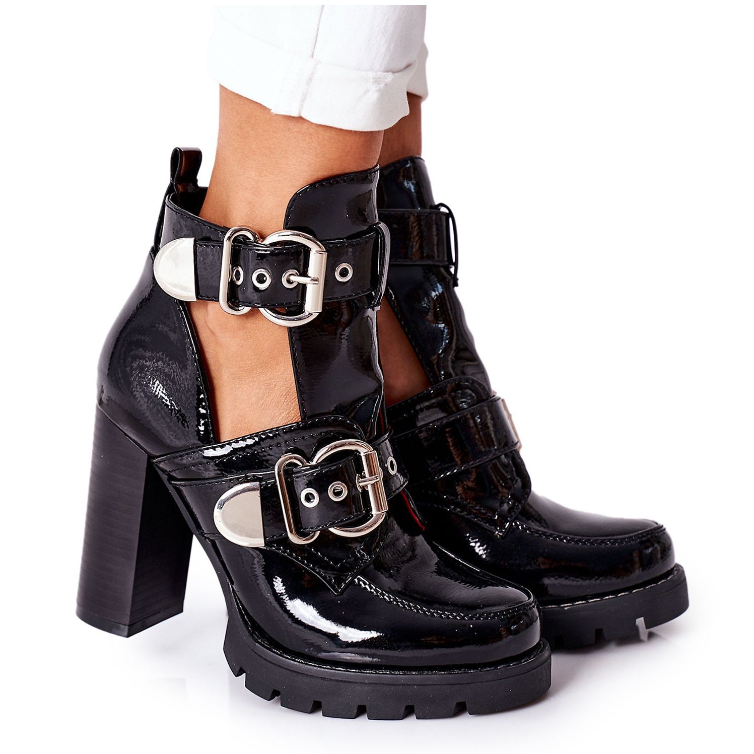 Crne lakirane gležnjače na visoku petu Bramshall Buckle savršen su izbor za žene koje žele spojiti eleganciju s udobnošću. Ove elegantne gležnjače od lakirane ekološke kože odlikuju se ne samo modernim izgledom, već i praktičnošću.