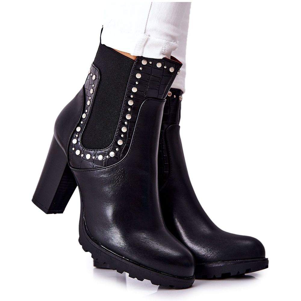 PG1 Gležnjače na visoku petu sa kamenčićima, Black Wissey idealan su prijedlog za žene koje cijene eleganciju i udobnost. Ove iznimno elegantne čizme izrađene su od visokokvalitetne eko kože koja jamči izdržljivost i jednostavno održavanje. Izolacija u obliku pokrivača za cipele daje toplinu u hladnijim danima, što ih čini odličnim izborom za jesenske šetnje.
