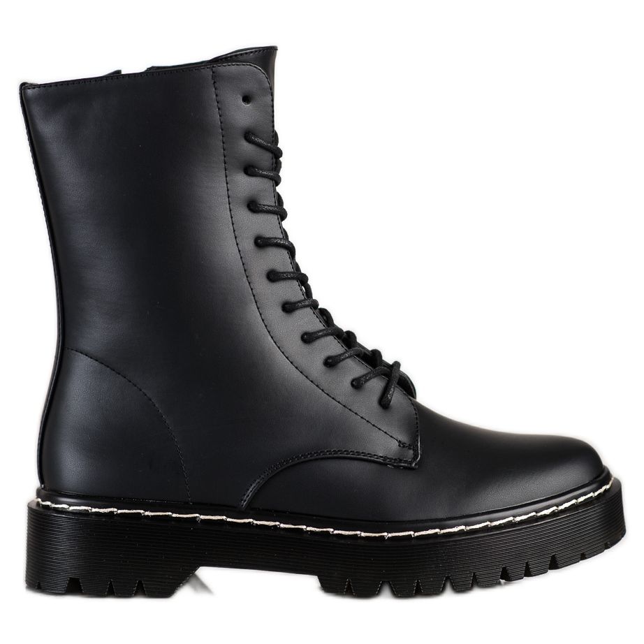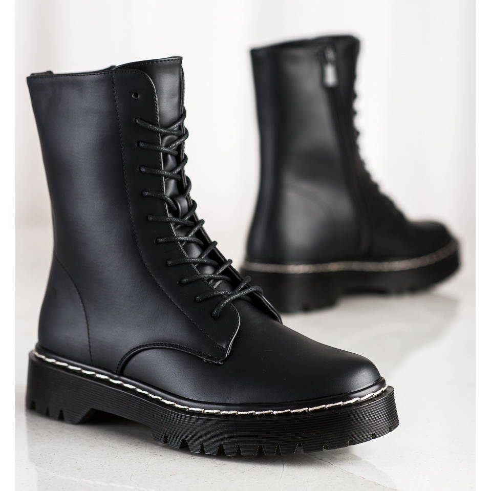 Crne boje i zaobljen vrh čine ove čizme savršenim i uz traperice i uz suknje, dodajući jedinstven rock stil svakom stajlingu. Unutarnja tkanina uloška čini vaša stopala udobna tijekom cijelog dana.