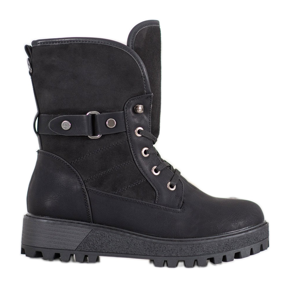 SHELOVET Čizme na vezanje s ovčjom kožom crna