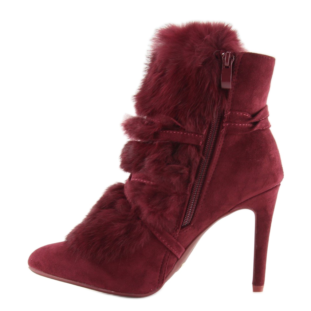 Čizme na visokoj peti s krznom klaret 1319 W. Crvene višebojan crvena