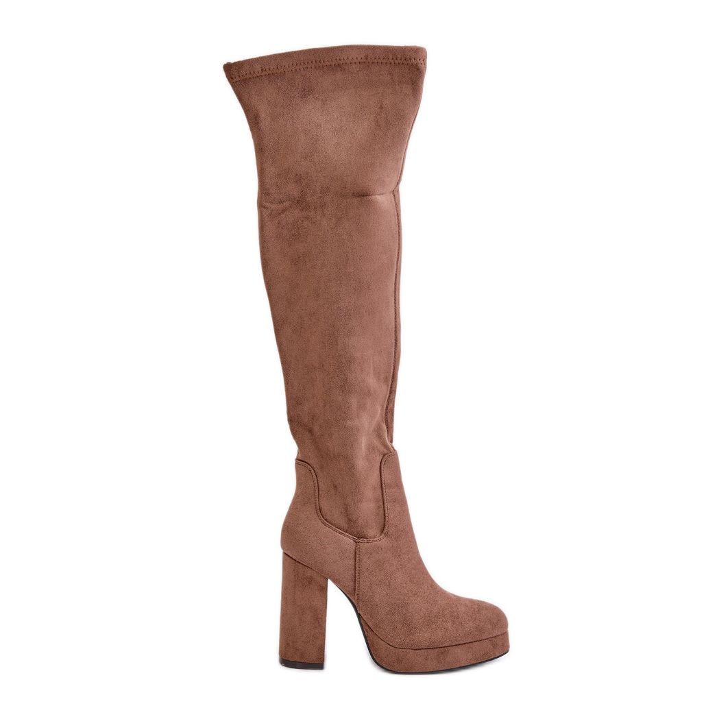 Inna marka Čizme na visoku petu i platformu s gornjištem iznad koljena od tamno bež zistarije ekološke antilop kože