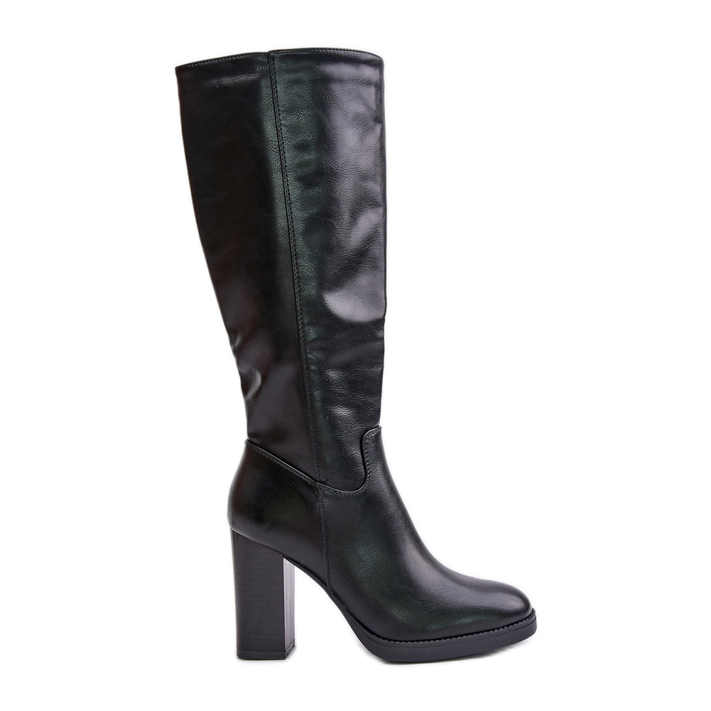 Čizme na visoku petu od eko kože iznad koljena, crna Riamaya