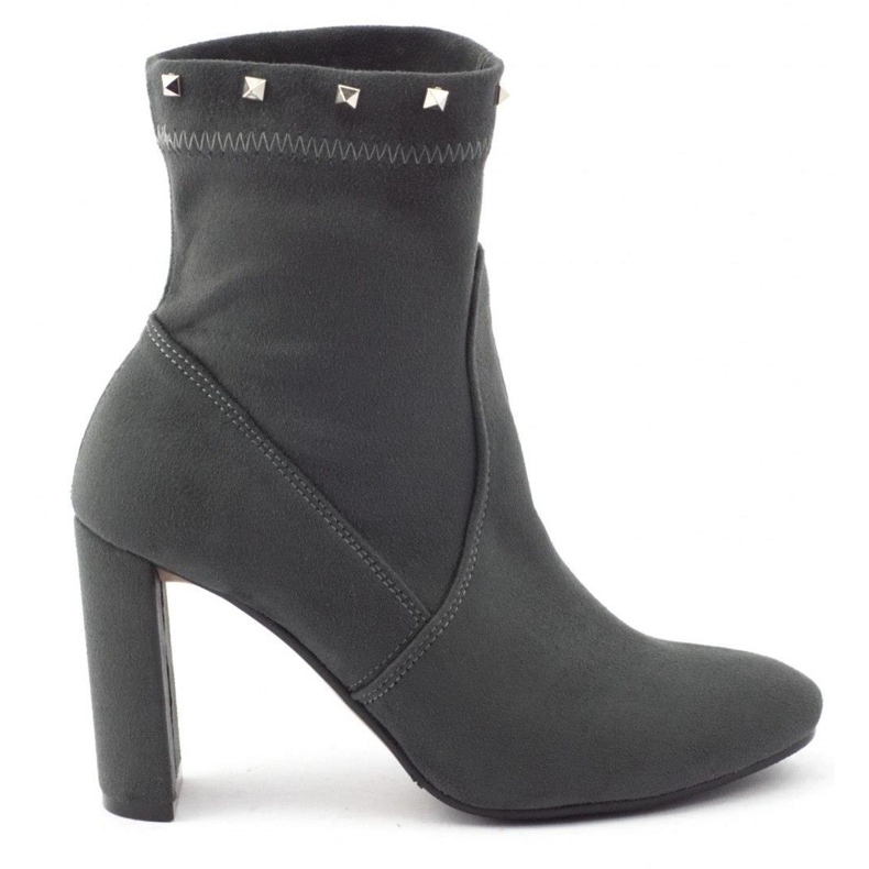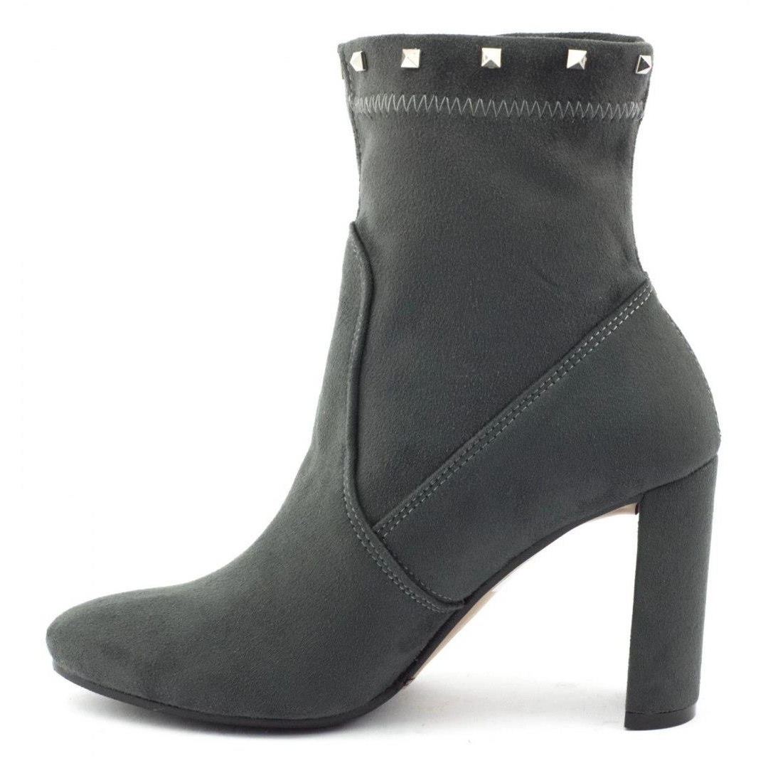 Elegantne ženske čizme Nicor 090-A kombiniraju moderan, stijeni karakter s pogodnošću upotrebe. Izvana, izrađena od ekološke kože u grafitnoj nijansi s višenamjenskim naglascima, unutra imaju prirodni umetak od kože, što osigurava udobnost hodanja cijeli dan. Gornji doseg do gležnja i ukrašen je rhinestones i klipovima, a zaobljeni nos dodaje univerzalni izgled.