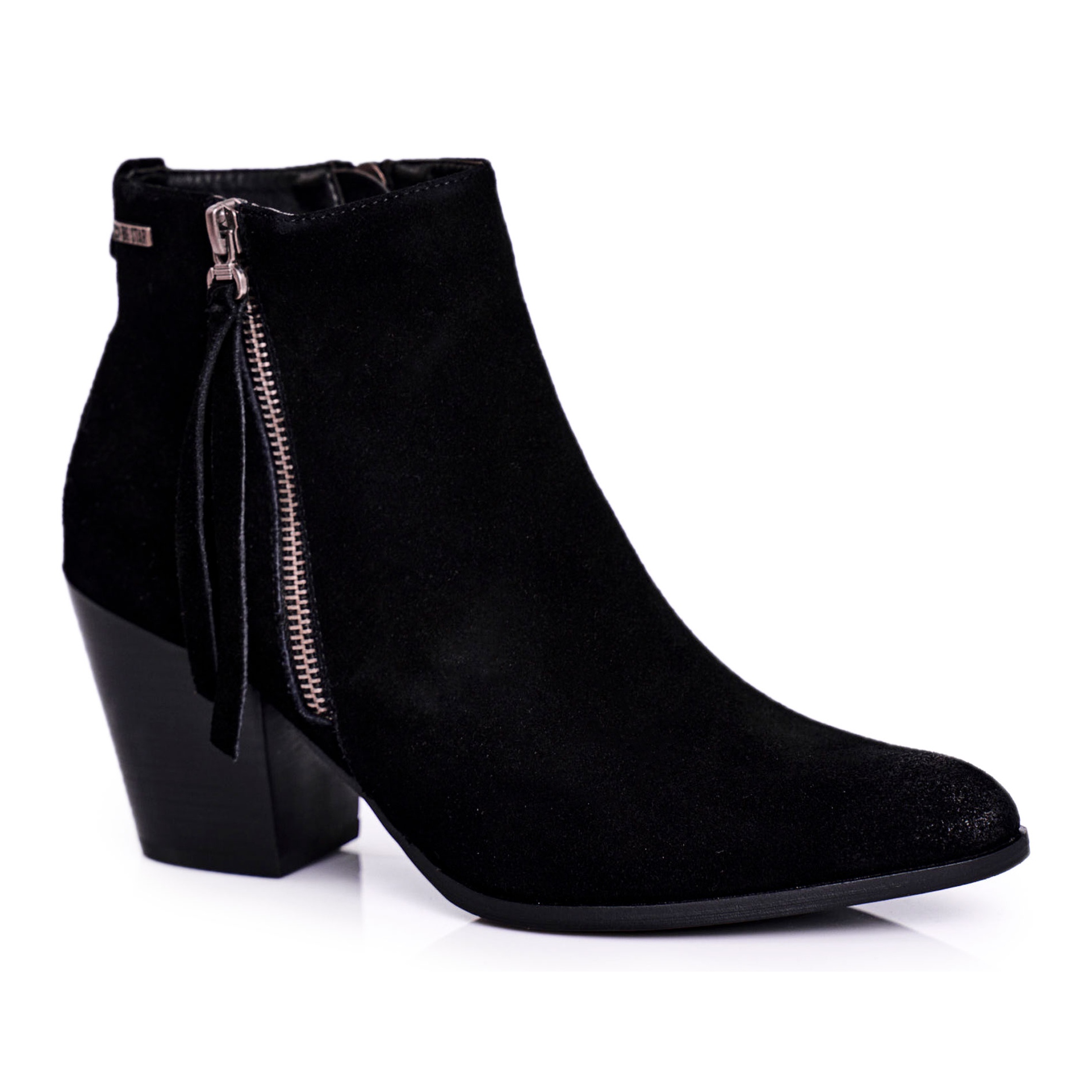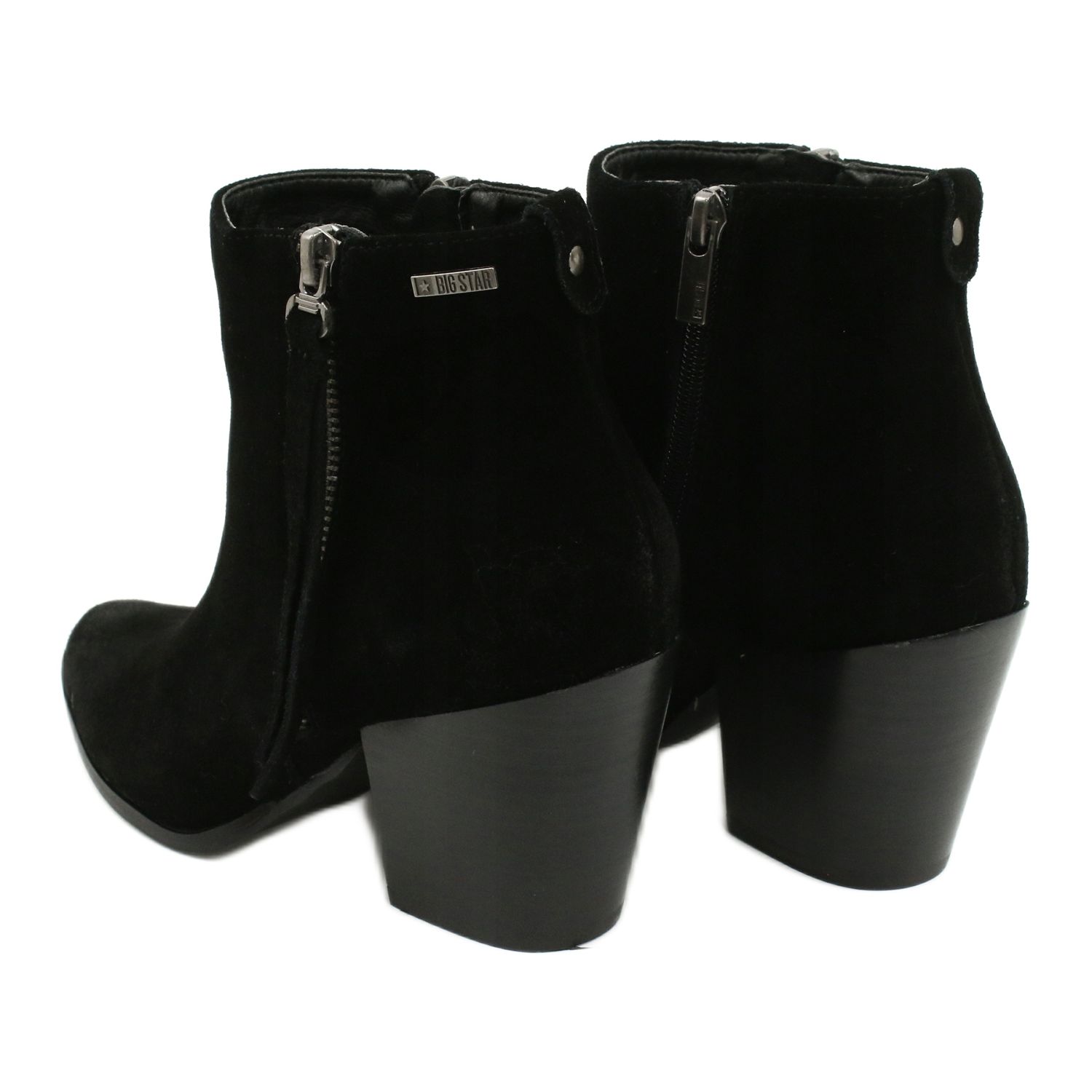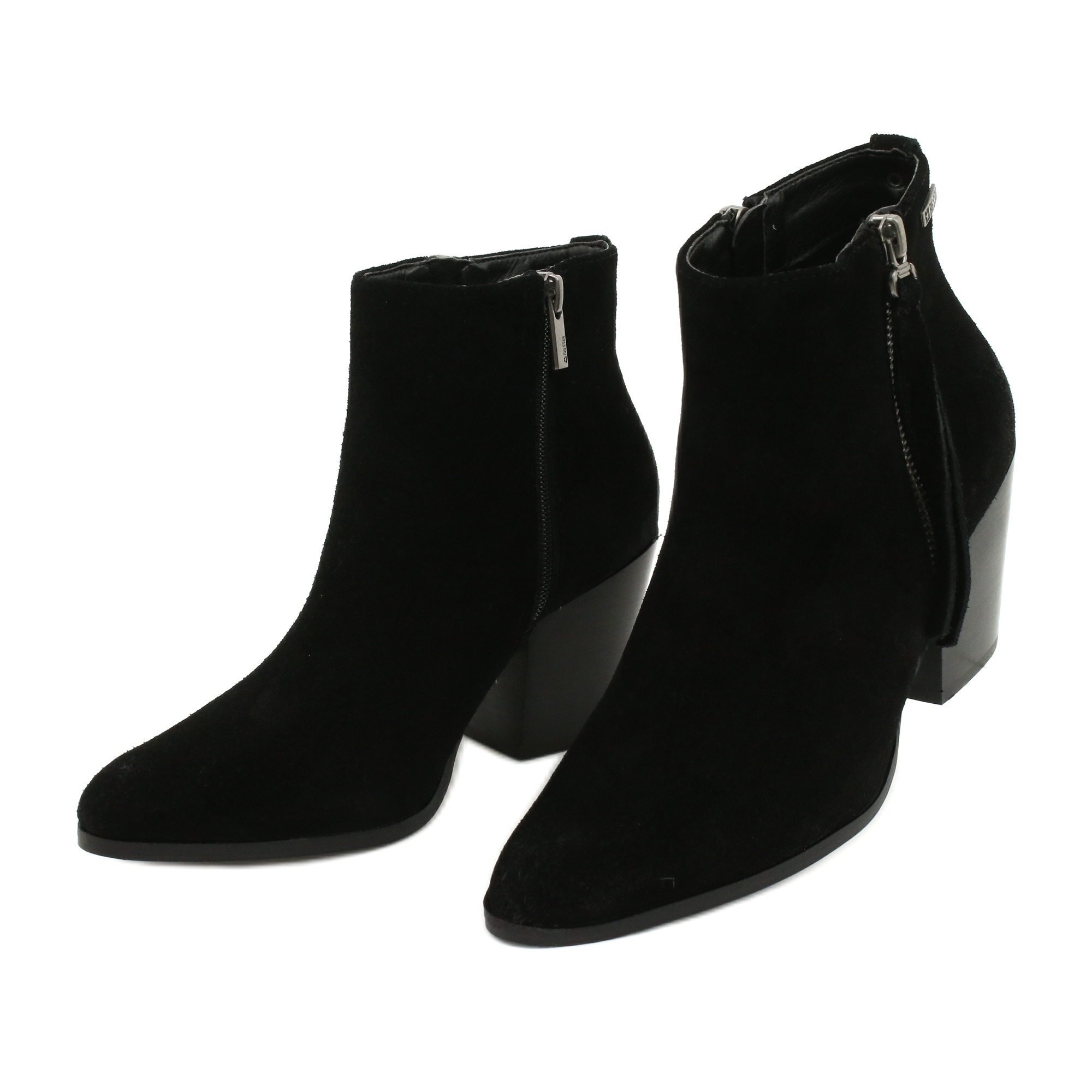 Gležnjače od brušene kože Big Star GG274362 u crnoj boji savršen su izbor za svaku ženu koja želi spojiti stil s udobnošću. Ove elegantne čizme s niskom petom u obliku bloka od 7,5 cm odlikuje se ne samo modernim dizajnom, već i funkcionalnošću, što ih čini apsolutnim must-haveom ove sezone.