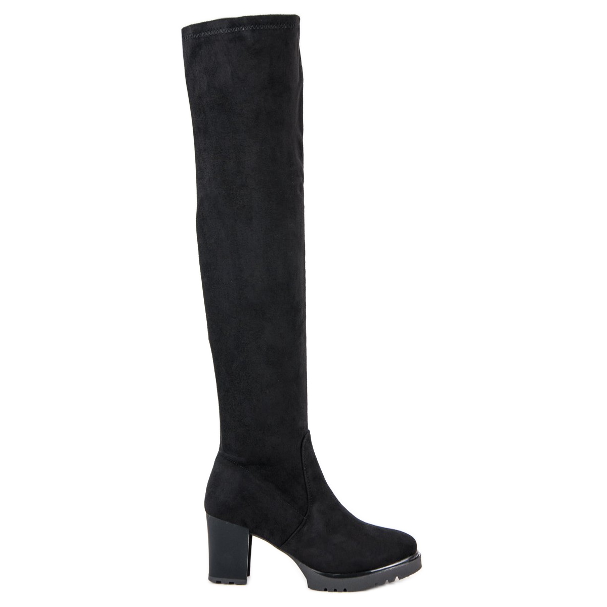 Platforme od brušene kože u crnoj boji savršen su odabir za jesenske i zimske dane. Izrađene od ekološke antilop kože, spajaju eleganciju i udobnost korištenja. Klasičan kroj s visokim gornjim dijelom do koljena čini ih lijepim na nozi, a ujedno pružaju i odgovarajuću toplinu.