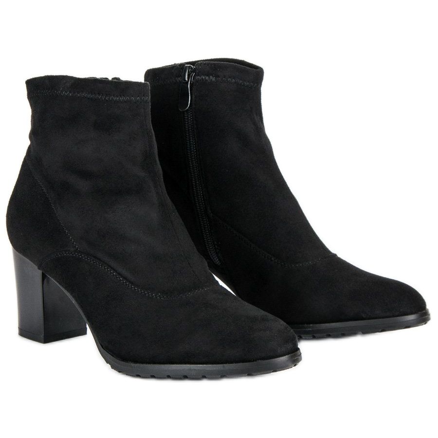 Ove crne gležnjače na visoku petu odlikuje se lijepo krojenim, uskim gornjištem, visine 12 cm, koje savršeno ističe oblik nogu. Zahvaljujući minimalističkom dizajnu, bez suvišnih šara, čizme će se uklopiti kako u elegantan tako i u casual stil.