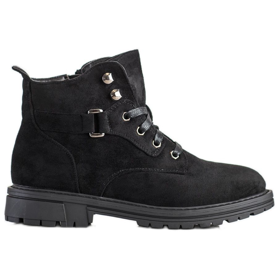 Detalji: SHELOVET Čizme od antilopa na vezice crno