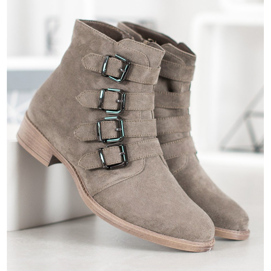 Gležnjače sežu iznad gležnja, što ih čini savršenom nadopunom casual stilova. Sa strane gornjeg dijela nalazi se patentni zatvarač koji olakšava obuvanje, a na prednjoj strani cipela nalaze se ukrasne metalne kopče koje im daju jedinstven karakter. Zaobljeni vrhovi i mekana, ugrađena peta čine čizme iznimno udobnima, a njihova visina pete od 3 cm osigurava stabilnost.