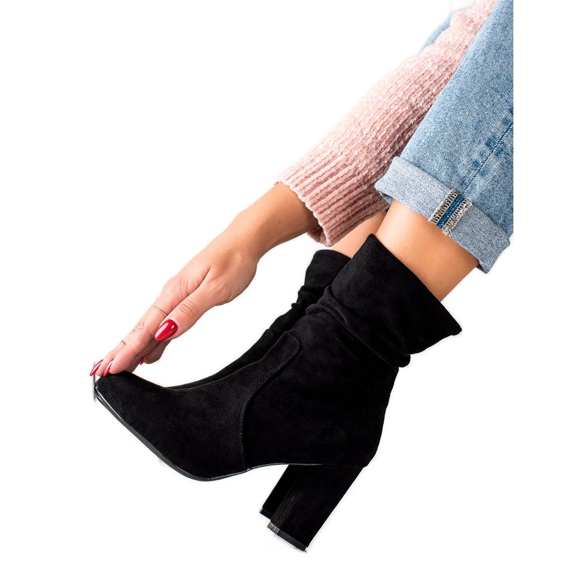 Pojedinosti: TRENDI Čizme od antilopa s naborima crna