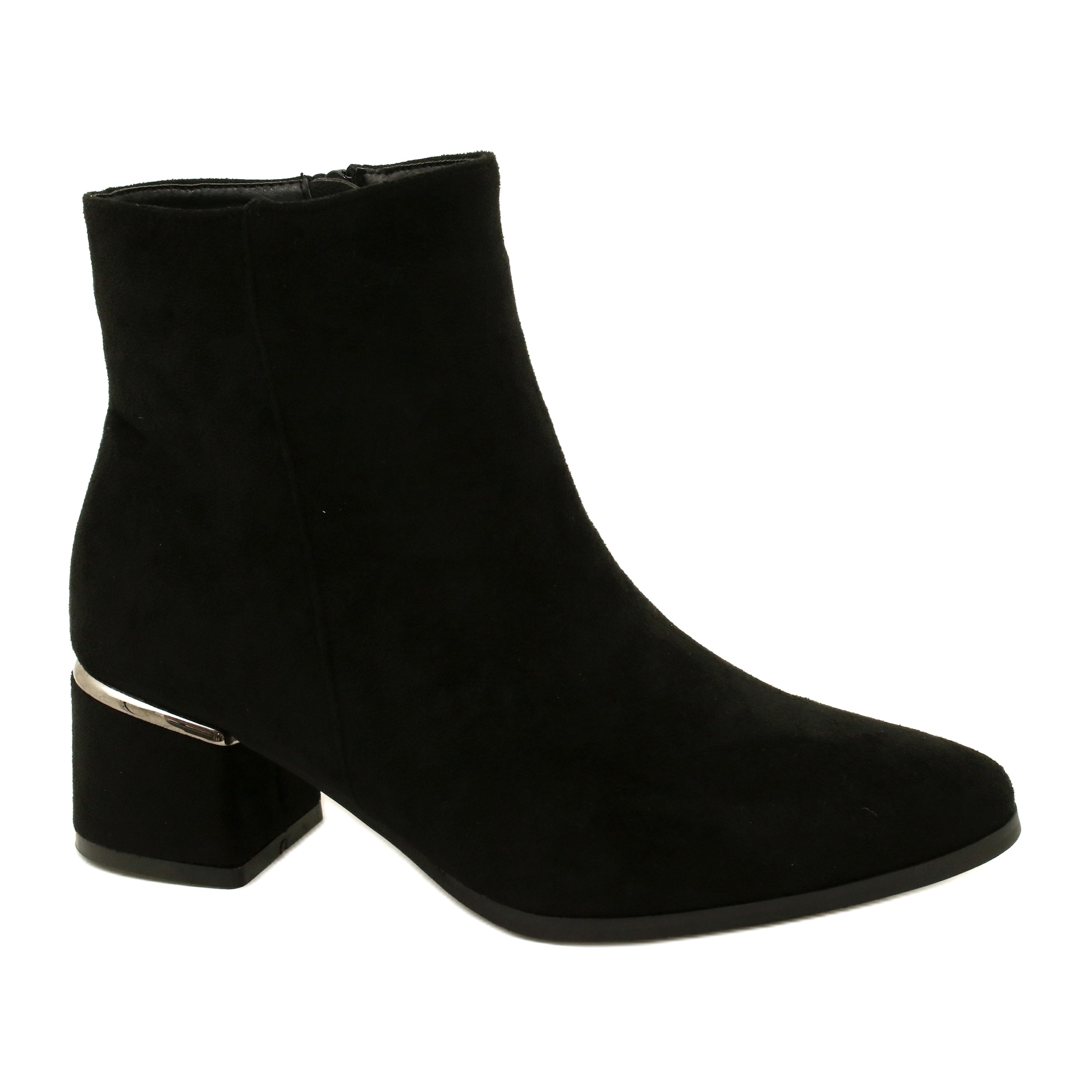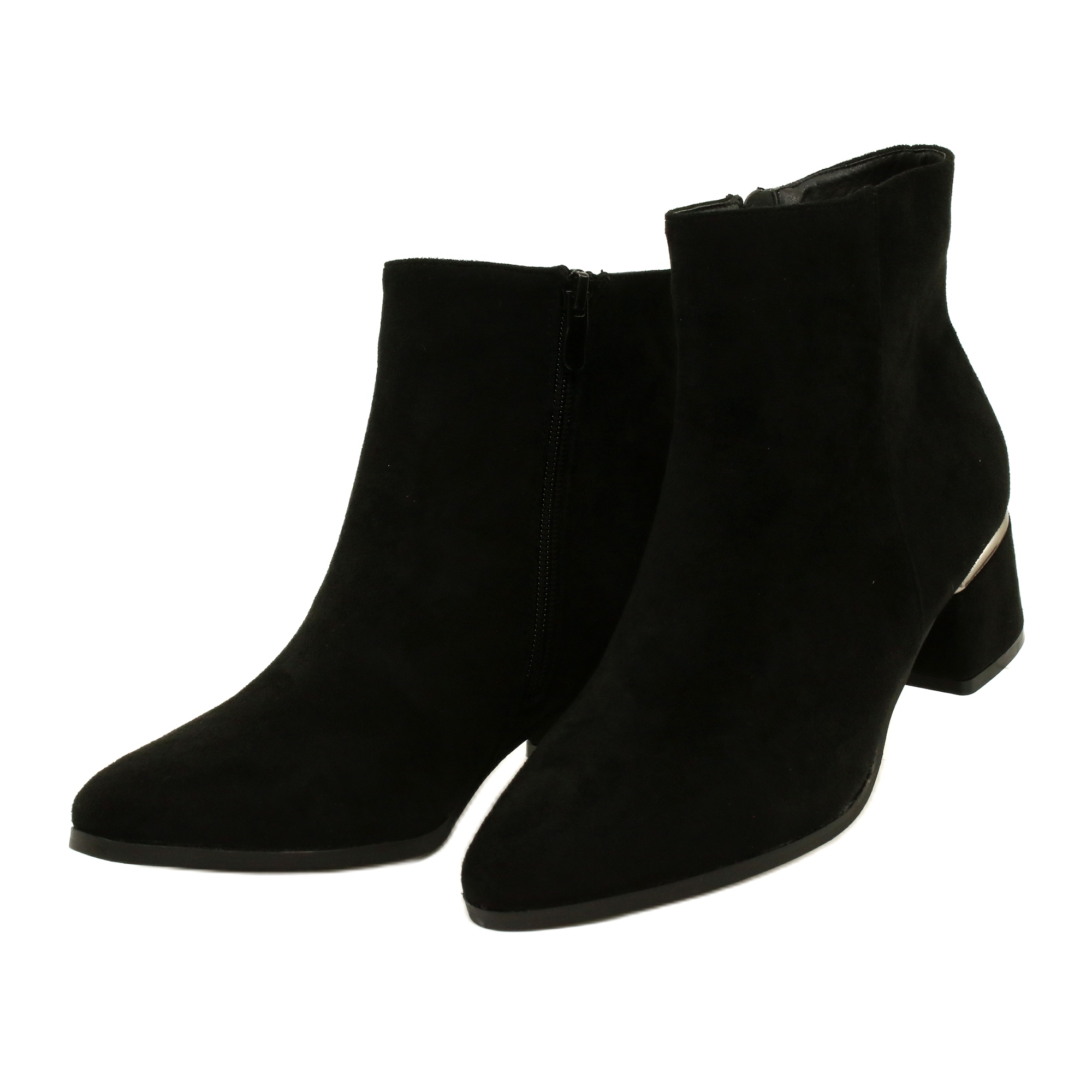 Klasične i elegantne ženske eleento čizme koje kombiniraju stil s udobnošću. Izrađene od ekološke kože s teksturom od antilop u univerzalnoj crnoj boji, savršeni su i za svečane i za svakodnevne stililizacije. 5 cm visok post dodaje ženstvenost i istovremeno osigurava nošenje stabilnosti. Model s patentnim zatvaračem olakšava stavljanje, a spektakularni ukras srebra suptilno naglašava prirodu cipela.