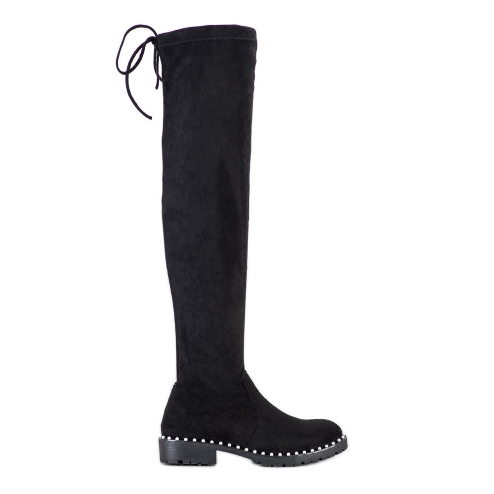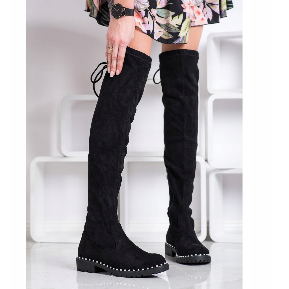 Pojedinosti: SHELOVET Čizme preko koljena s biserima crna