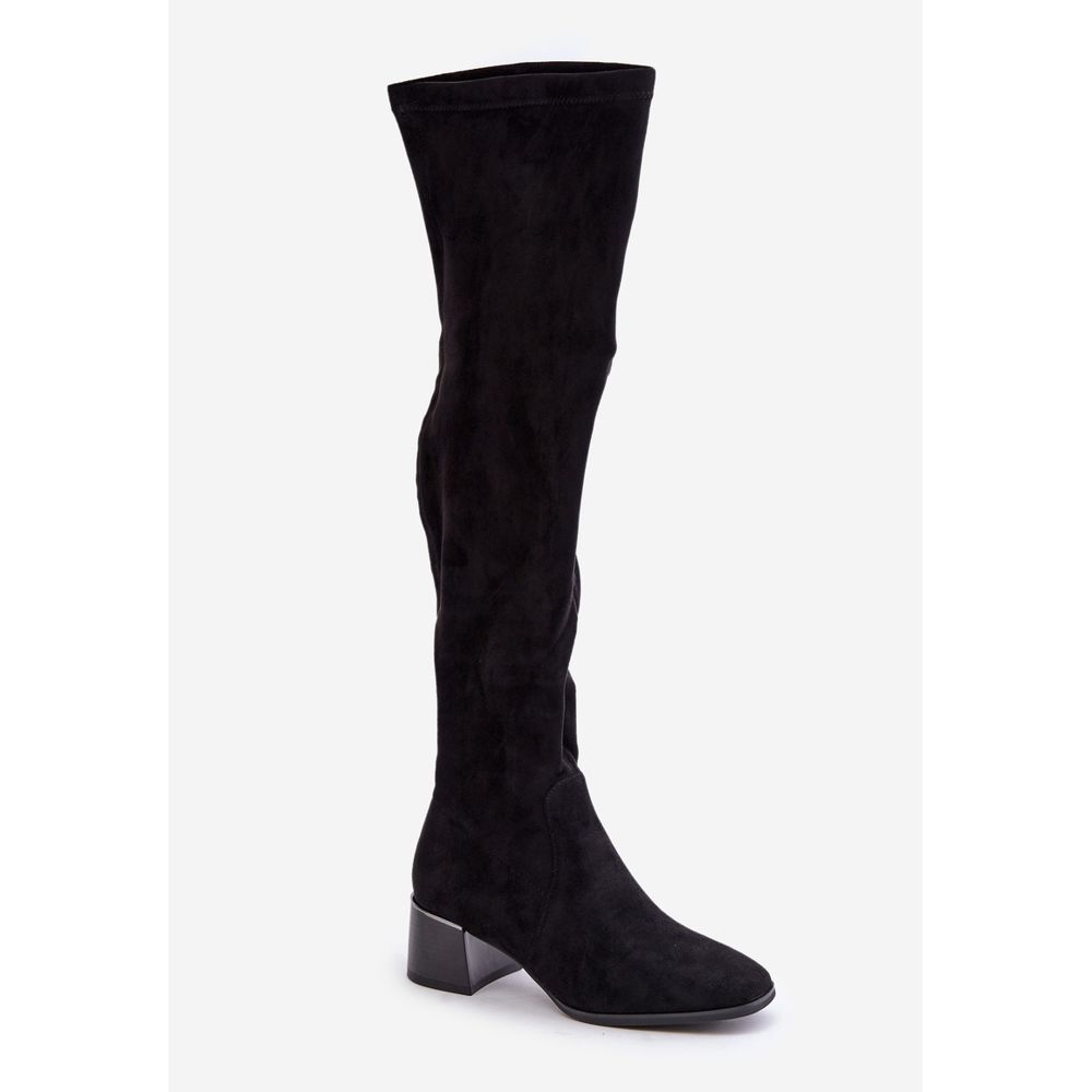 Čizme preko koljena s blok petom od eko antilop kože, Black Galadi crna