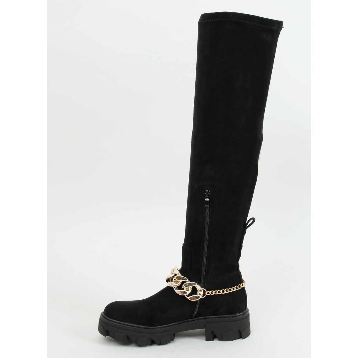 Pojedinosti: Čizme preko koljena s debelim potplatom ML174 Microfibre Black crna