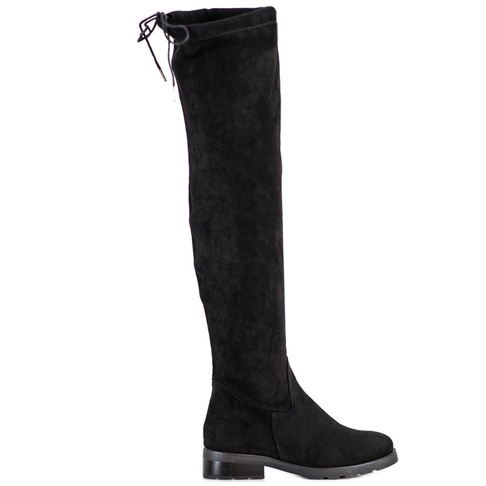 SHELOVET Čizme preko koljena s kubnim cirkonijem crna