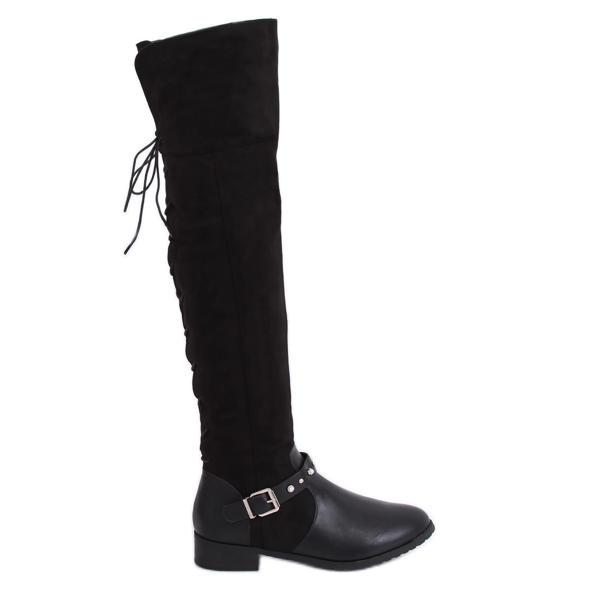 Čizme preko koljena s ravnim potpeticama crne 688-3 Crne crna