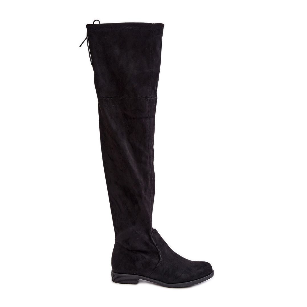 Čizme preko koljena s ravnom petom od eko antilop kože, Black Linnithia crna