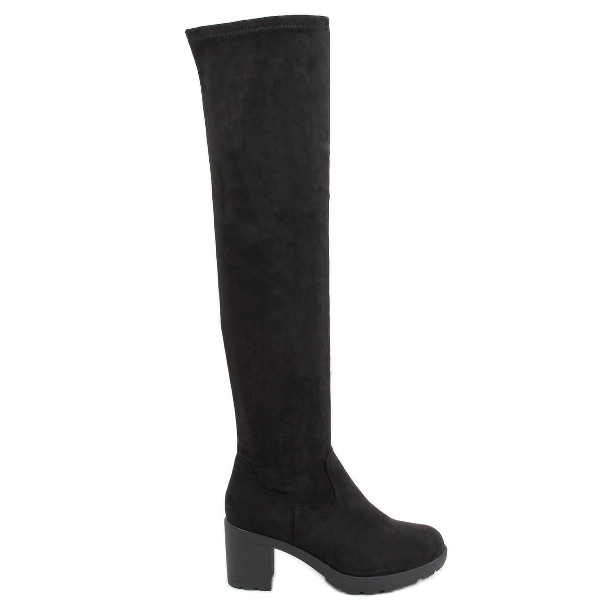 Čizme preko koljena sa širokim potpeticama crne Y8603 Crne crna