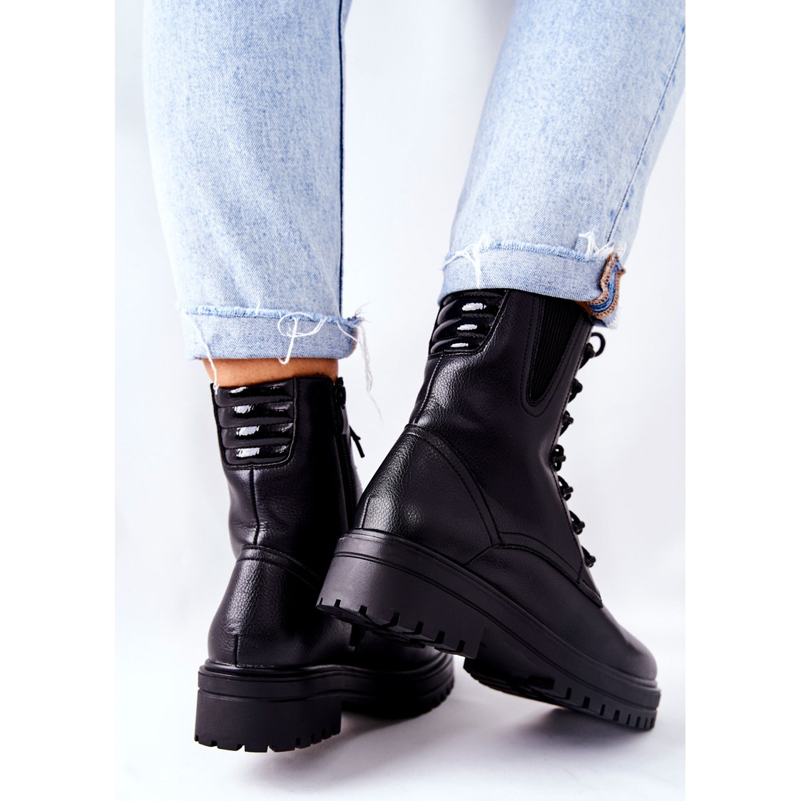 Čizme su dizajnirane imajući na umu udobnost korištenja. Opremljene patentnim zatvaračem i vezom, omogućuju jednostavno prilagođavanje nozi, a nježna vezica s vanjske strane daje im jedinstven karakter. Cipele su iznutra izolirane dekom za cipele, što ih čini savršenim za hladnije dane.