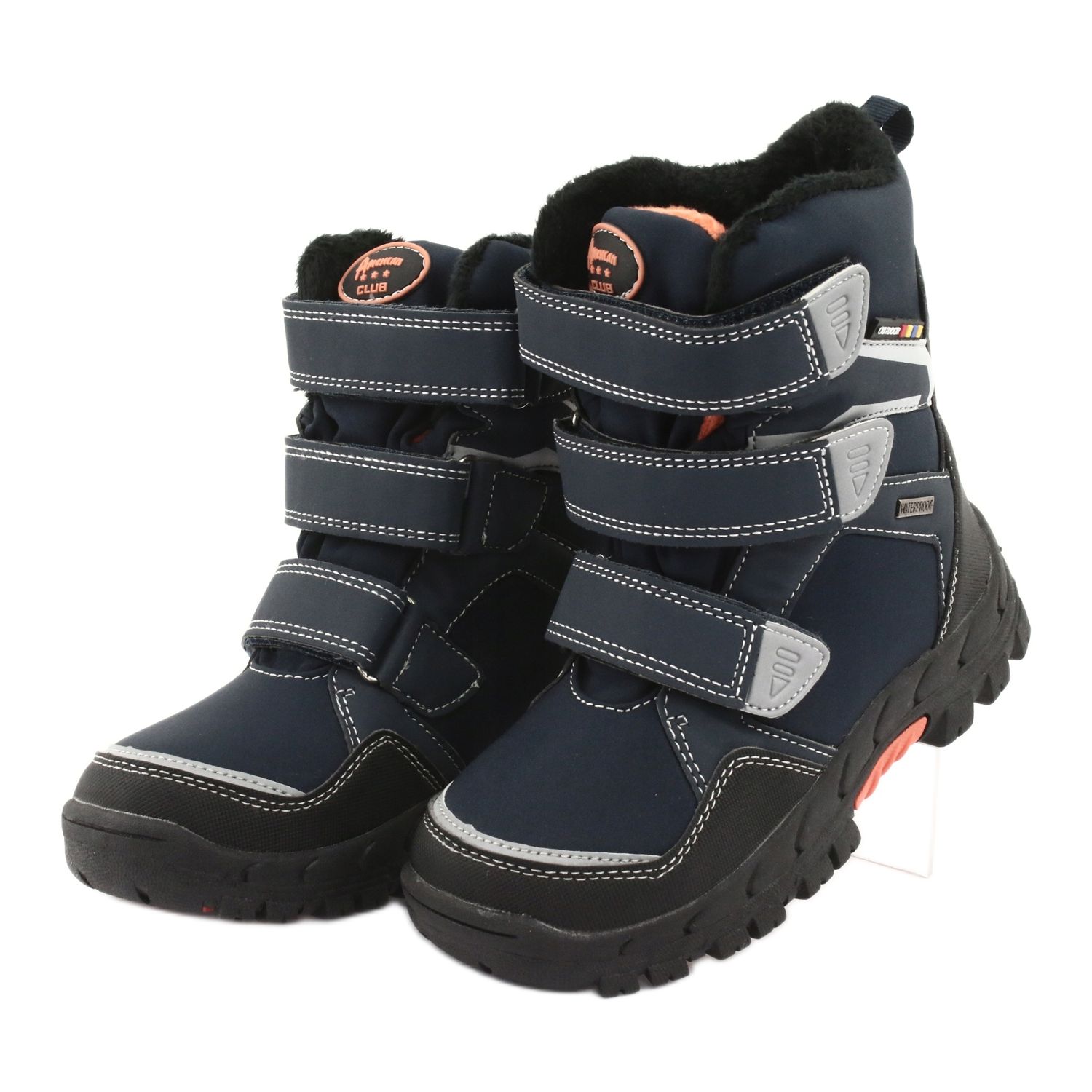 American Club RL32 čizme savršeno su rješenje za zimske avanture za mlade istraživače. Ove izolirane čizme za snijeg duboke tamnoplave boje s narančastim detaljima spajaju modernost s funkcionalnošću, što ih čini savršenim izborom za dječake.