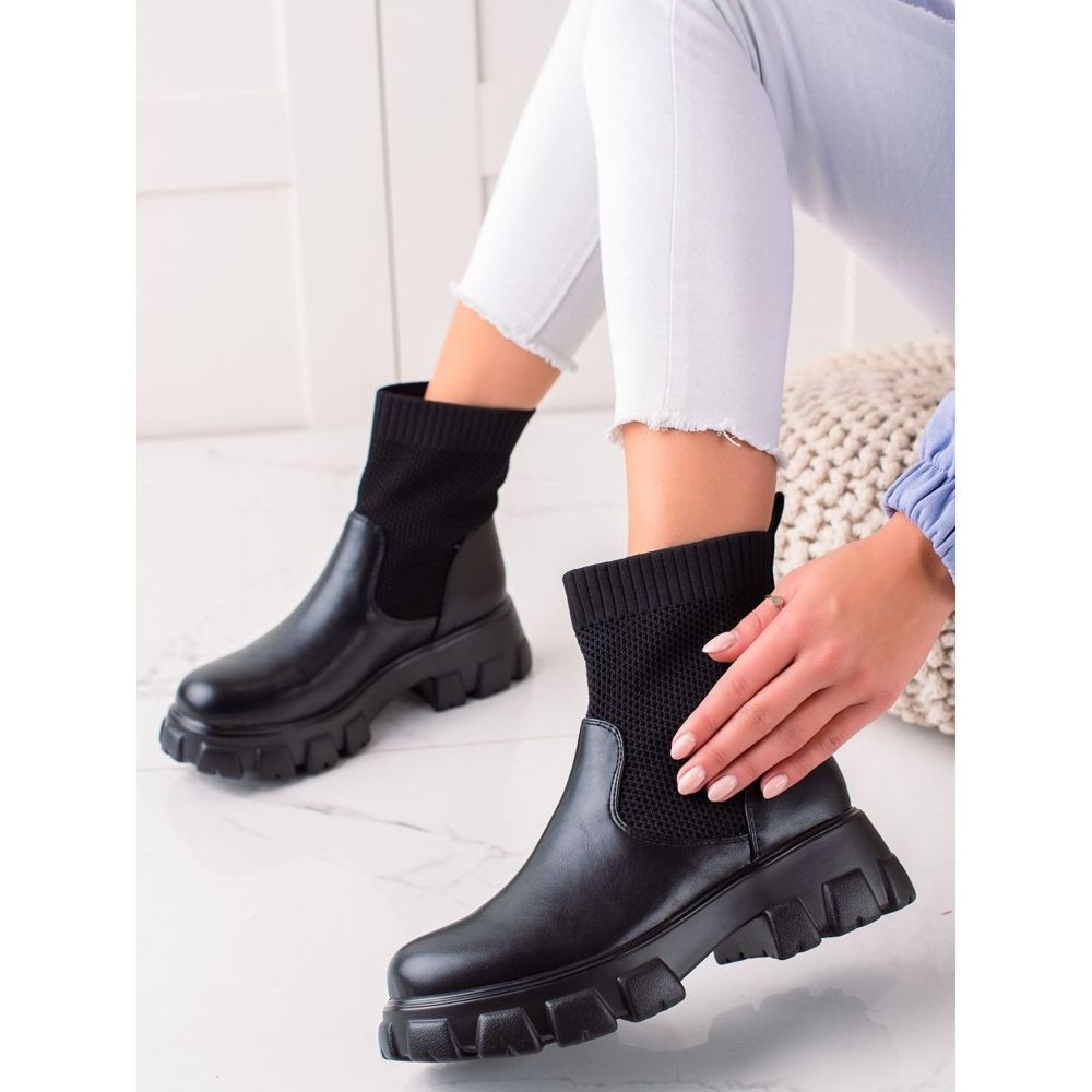 TRENDI Čizme s ažurnom čarapom crna