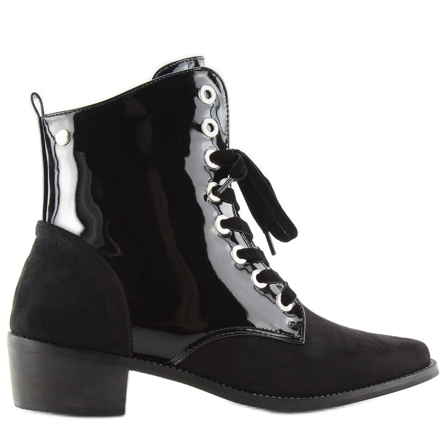 Pojedinosti: Čizme s čipkom, lakirane crno crne crna