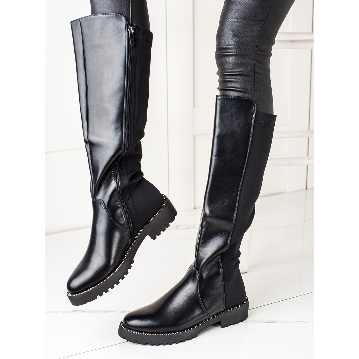 Bella Star Čizme s eko kožom s kubnim cirkonijem crna
